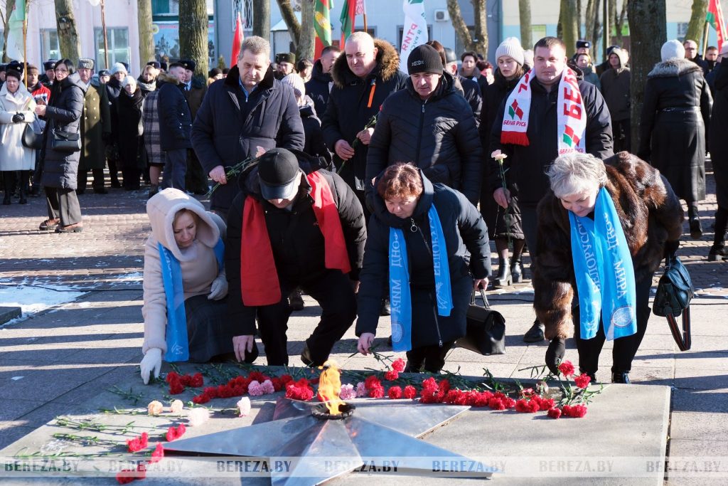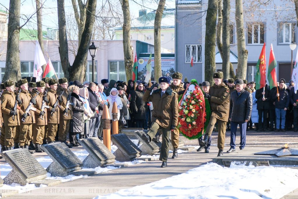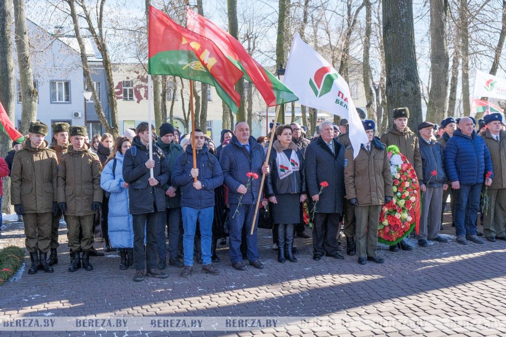 Традиционно торжества в канун Дня защитников Отечества и Вооруженных Сил Республики Беларусь начались в Комсомольском сквере г. Березы. Возле братской могилы советских воинов и партизан собрались руководство района, военнослужащие воинских частей Березовского гарнизона, представители предприятий и общественных организаций, учащиеся школ и воспитанники военно-патриотических клубов, горожане.