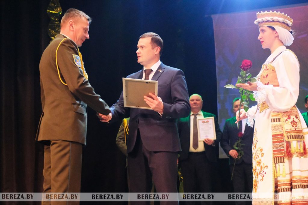Продолжился праздник во Дворце культуры г. Березы. Гла­ва района еще раз поздравил тех, кто не понаслышке зна­ет, что такое воинская служба, а также тех, кто мирным тру­дом обеспечивает процвета­ние и развитие Березовщины, с наступающим праздником и вручил награды Березовско­го райисполкома и районно­го Совета депутатов за добро­совестный труд, высокий про­фессионализм, личный вклад в реализацию военно-патрио­тического воспитания молоде­жи и активное участие в обще­ственно-политической жизни региона особо отличившимся березовчанам.