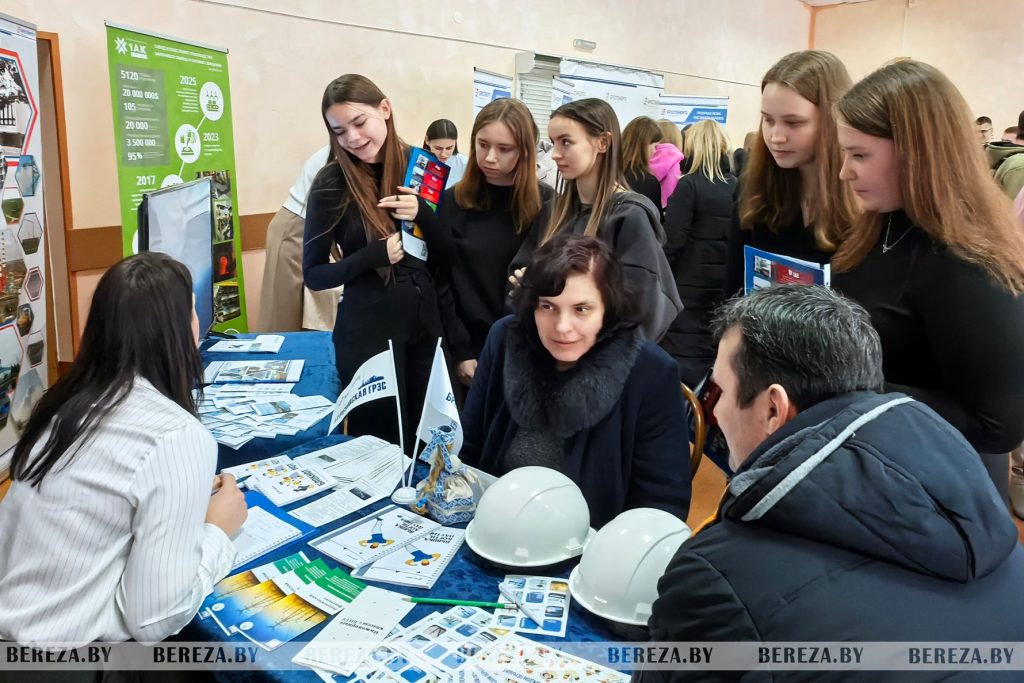 В свободное от занятий время зал наполнился оживленными голосами. Все собрались здесь с одной целью: найти свою дорогу в жизни. Это мероприятие, организованное отделом по образованию Березовского райисполкома, стало точкой пересечения интересов будущих выпускников, их родителей, ведущих сельхозпредприятий, организаций и предприятий района. На встречу были приглашены потенциальные работодатели – заказчики кадров в лице администрации и специалистов предприятий, организаций и учреждений Березовщины: отдел по образованию, ОАО «Спорово», ОАО «Нарутовичи», ОАО «Песковское», Березовская ЦРБ им. Э.Э. Вержбицкого, районный центр гигиены и эпидемиологии, районный отдел внутренних дел, районный отдел по чрезвычайным ситуациям, ОАО «Березовский мясоконсервный комбинат», ГУПП «Березовское ЖКХ», филиалы «Березовская ГРЭС» и «Белоозерскэнергоремонт» РУП «Брестэнерго», ООО «Белинвестторг-Сплав». Интерактивные площадки посетили учащиеся средних школ и гимназии г. Белоозерска, Здитовской, Споровской и Песковской средних школ, которые смогли ознакомиться с предложениями организаций района, представители которых не упустили возможности замотивировать ребят на целевое обучение.