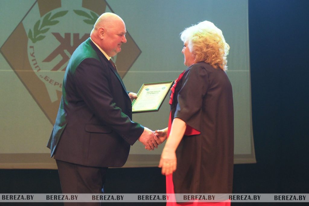 Самая важная часть праздничной церемонии – вручение наград наиболее отличившимся работникам. Так, главный бухгалтер Березовского ЖКХ Татьяна Баранова удостоена высокого звания «Ганаровы работнік жыллева-камунальнай гаспадаркі» и награждена нагрудным знаком Министерства жилищно-коммунального хозяйства. Нагрудным знаком отличия Министерства антимонопольного регулирования и торговли «Выдатнік бытавога абслугоўвання» поощрен Владимир Левкович. Почетную грамоту Министерства жилищно-коммунального хозяйства получила мастер абонентского отдела Елена Шемерей. Благодарность Министерства жилищно-коммунального хозяйства объявлена заместителю начальника цеха котельного хозяйства Алексею Драбовичу.