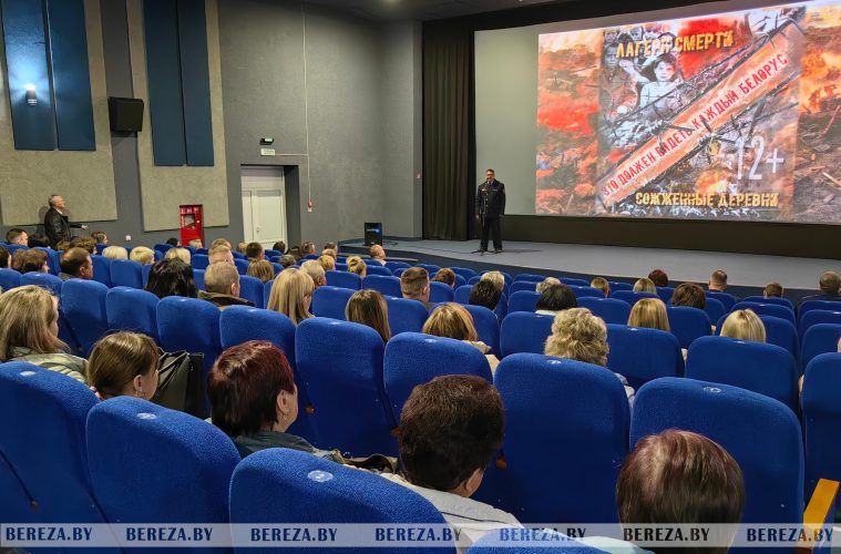 Кинодилогию о геноциде белорусского народа представили в березовском кинотеатре «Октябрь». В числе первых зрителей документальных фильмов – глава района Вячеслав Метлицкий, председатель районного Совета депутатов Данута Гукина, член Совета Республики Национального собрания Республики Беларусь Татьяна Игнатюк, представители Березовского райисполкома, служб и ведомств, профсоюзного актива, общественных объединений.