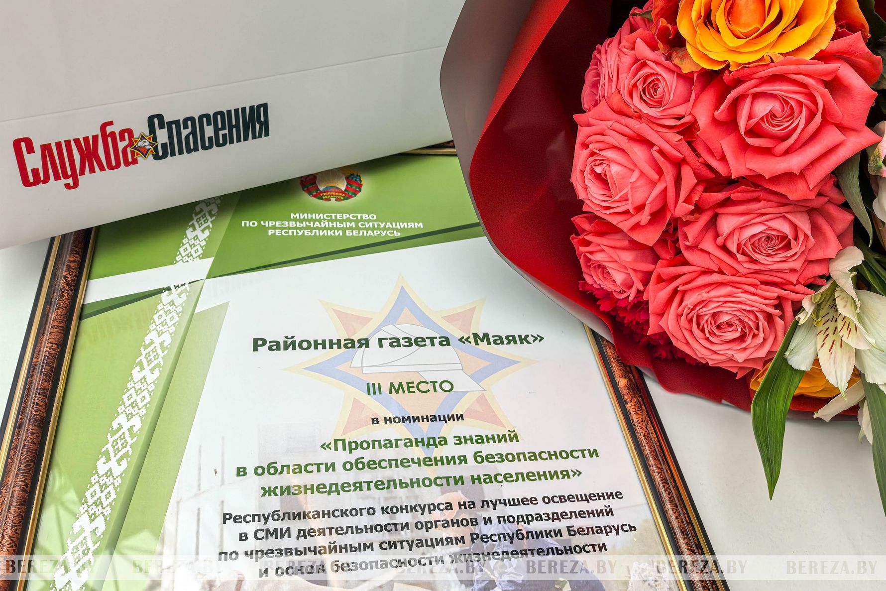 Коммунальное информационное унитарное предприятие «Редакция Березовской районной газеты «Маяк» завоевала диплом lll степени в номинации «Пропаганда знаний обеспечения безопасности жизнедеятельности населения». Награду журналисту редакции Рите Лютыч вручил министр по чрезвычайным ситуациям Вадим Синявский.