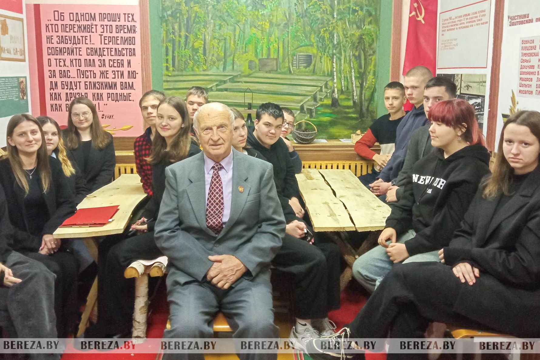 Следующий этап проек­та – встреча с ветераном пе­дагогического труда, быв­шим учителем истории на­шей школы, руководителем школьного музея, председа­телем ветеранской органи­зации при Споровском сельисполкоме, почетным вете­раном Белорусской респу­бликанской организации ве­теранов Иваном Павловичем Чайчицем. Он с большим эн­тузиазмом провел для уча­щихся 9 и 11 классов урок истории, эпиграфом к кото­рому стали строки из сти­хотворения «Дети войны», написанные самим Иваном Павловичем. Гость поведал о своем военном детстве, о тех невзгодах, которые ему пришлось пережить. Конеч­но же, он подробно расска­зал о партизанском движе­нии на территории нашего населенного пункта, об од­носельчанах, защищавших Брестскую крепость. В кон­це встречи ребята задавали вопросы, которые их инте­ресовали.