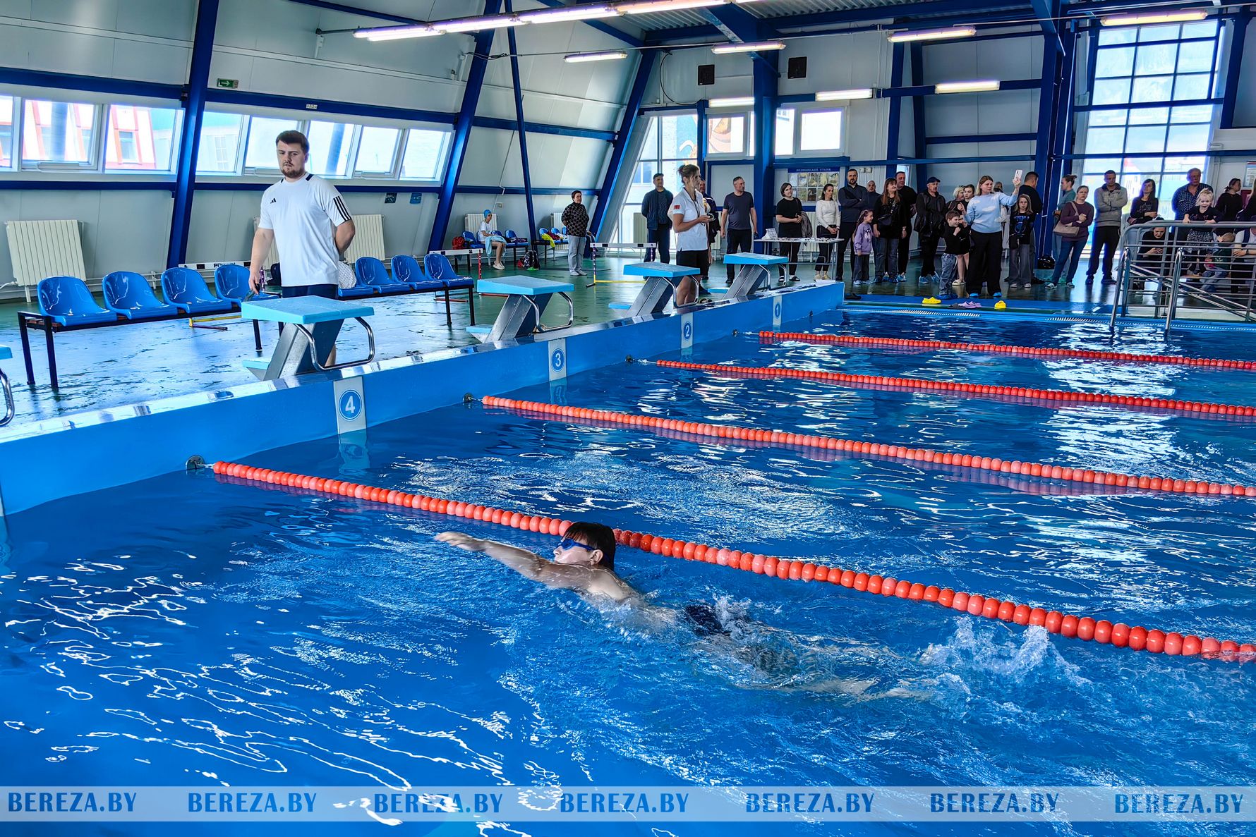 В бассейне «Дельфин» юные березовские пловцы выявляли самых быстрых и выносливых в рамках Открытого первенства СДЮШОР г. Березы по плаванию, приуроченного к профессиональному празднику и 80-летию Великой Победы.