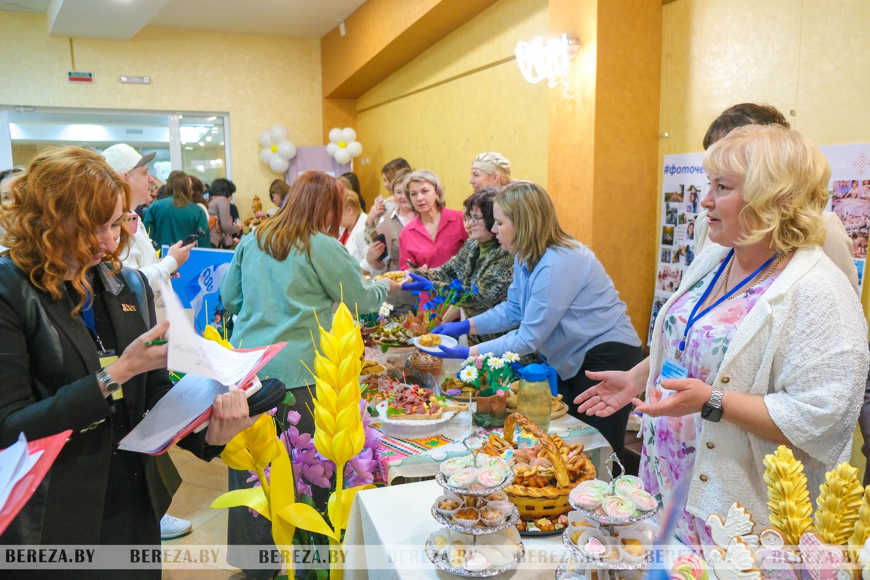 Соревновательный момент начался еще в холле, где жюри и все желающие смогли оценить разнообразие кулинарных шедевров на выставке-дегустации «Чем богаты, тем и рады», на которой приемные родители и родители-воспитатели из каждого района Брестской области представили фирменное блюдо своей семьи. Здесь все удивили блюдами и оригинальностью их украшения и подачи. Чего только стоили названия: десерт «Желейный рай», каравай «Матуліна пяшчота», чизкейк «Мамин секрет», домашний зефир «Белорусское лукошко». Наши замещающие семьи – приемные родители Ольга и Василий Борушко из аг. Ревятичи и родители-воспитатели Елена и Виталий Севостьяновы из г. Березы – также презентовали свои блюда: – чайные традиции «Семейная симфония» и семейный каравай «Мы разные, но мы вместе». Привлекали взрослых и детей своей оригинальностью фотозоны – креативные пространства, организованные Малечской и Селецкой средними школами.