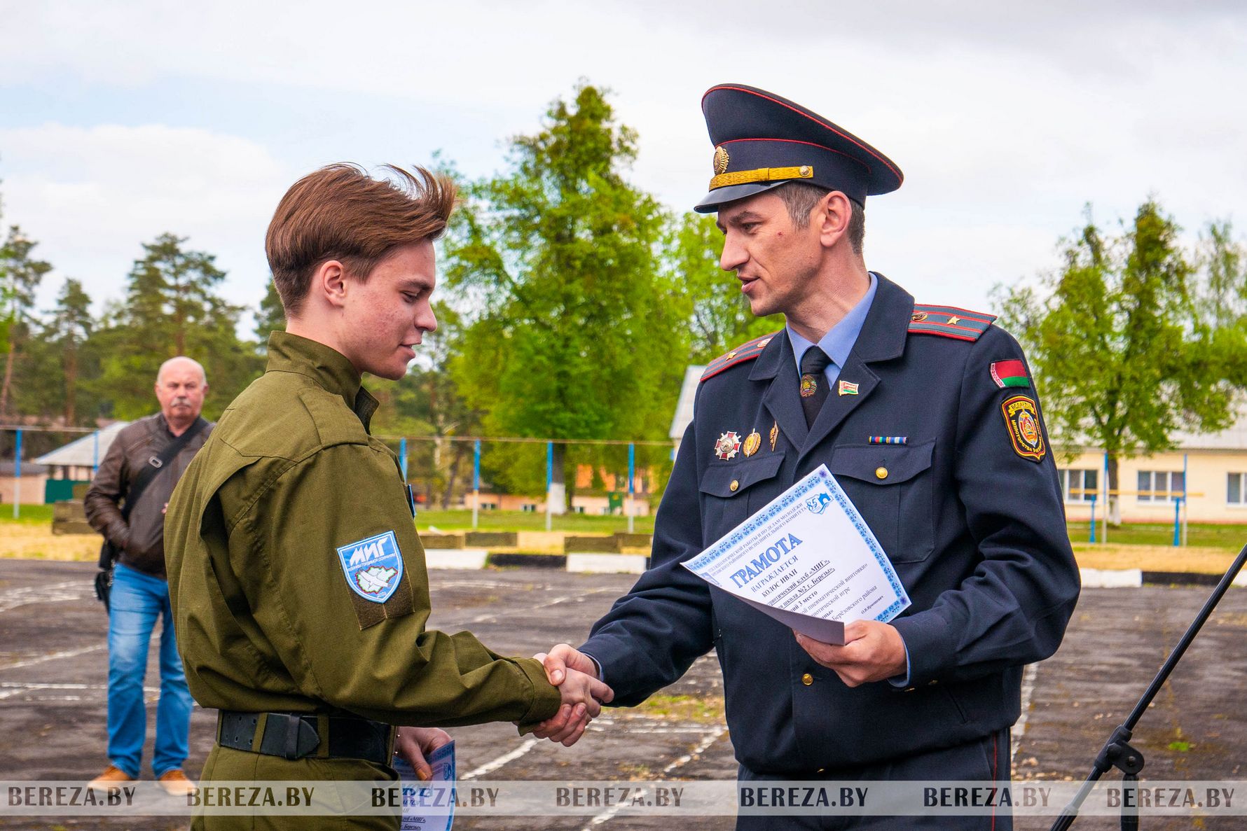 В церемонии открытия военно-патриотической игры приняли участие представители силовых структур района, Березовского РОВД. С приветственным словом к участникам обратились главный специалист отдела идеологической работы и по делам молодежи райисполкома Ольга Вашкевич, заместитель командира в/ч 67878 по идеологической работе Александр Ильченко, и.о. заместителя командира в/ч 97063 по идеологической работе Василий Кажуро, заместитель командира в/ч 97085 по идеологической работе Александр Быков. «Приветствую всех участников военно-патрио-тической игры. Радостно видеть, что с каждым годом ряды воспитанников клубов пополняются. Ведь за активной и целеустремленной молодежью – светлое будущее нашей страны. Пусть на протяжении всех соревнований атмосфера дружелюбия и сплоченности не покидает вас, а в нелегкой борьбе победит сильнейший. Желаю всем быть собранными, выносливыми не только сегодня, но и в жизни. Удачи и заслуженных побед», – обратился к ребятам заместитель начальника РОВД по ИРиКО Сергей Лисюк.