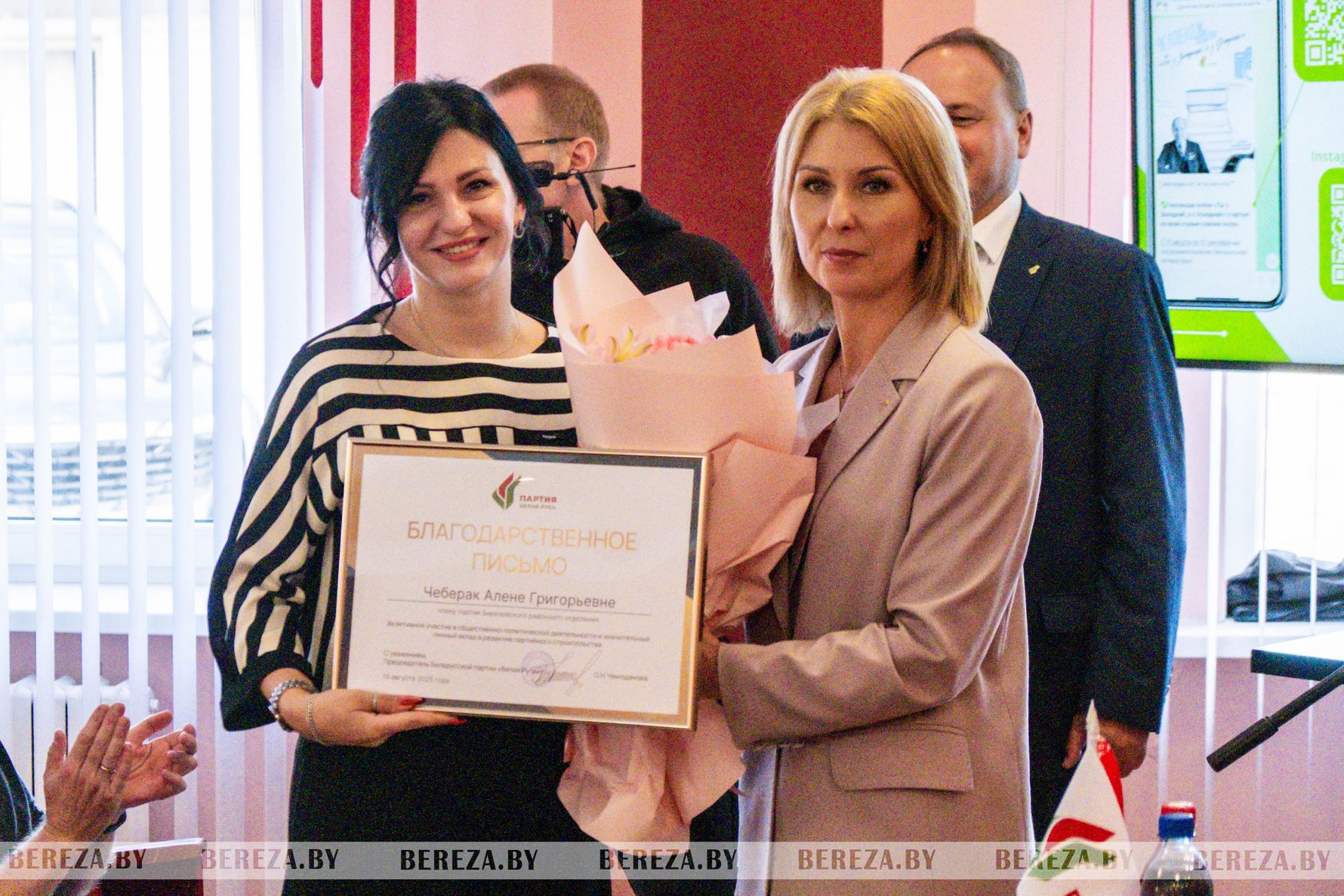 Торжественным моментом встречи стало вручение благодарственных писем за активное участие в общественно-политической деятельности и значительный вклад в развитие партийного строительства работникам ЖКХ Юлии Легуцкой и Алене Чеберак. А новым единомышленникам Ольга Чемоданова торжественно вручила партийные билеты и значки – в этот день дружную семью «Белой Руси» пополнили десять работников коммунальной службы. Директор Березовского ЖКХ Сергей Левонюк в свою очередь преподнес подарок почетной гостье – книги о предприятии и «Память. Историко-документальная хроника Березовского района», а также вышиванку, созданную работниками швейного цеха Березовского ЖКХ.