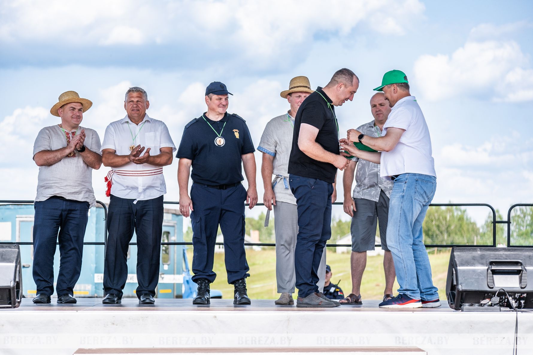 Во время соревнований по ручному сенокошению среди десяти почетных гостей зрители не стеснялись подбадривать и поздравлять VIP-участников. Первым финишировал прокурор Березовского района Александр Крутько, второе и третье места заняли председатели Междулесского и Стригинского сельисполкомов Юрий Каштелян и Иван Крагель соответственно.