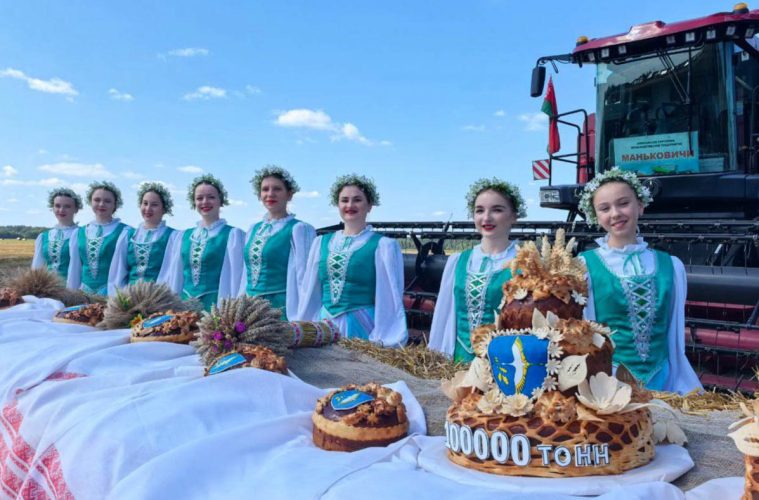 В Брестской области уже пять районов перешагнули рубеж по намолоту 100 тыс. т зерна. Вслед за Пружанским, Барановичским, Каменецким и Ивановским районами такой результат покорился Столинскому. На одном из полей 14 августа состоялась церемония чествования полесских аграриев.