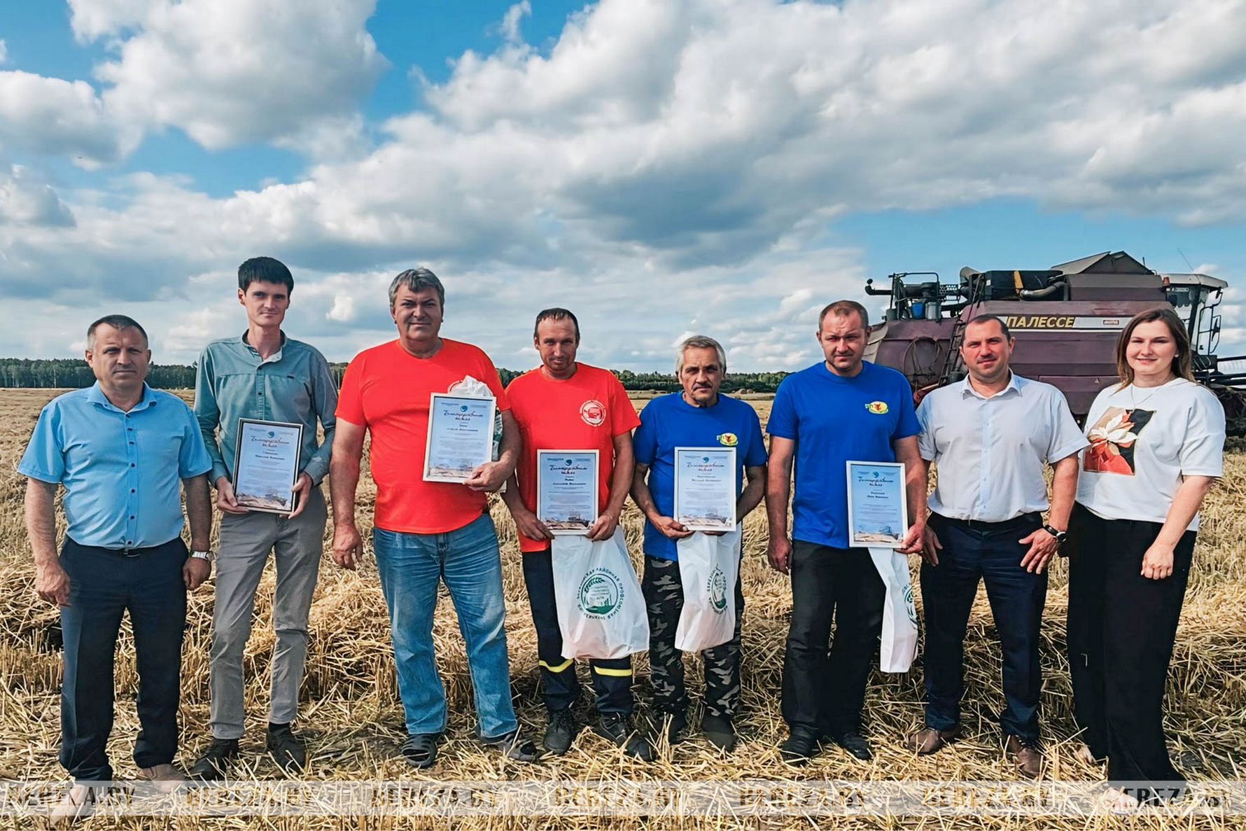 Особые слова благодарности и почести прозвучали в адрес комбайнеров Василия Приступчика и Ивана Кшевского, которые на комбайне КЗС-10К день за днем бороздили поля, собирая драгоценное зерно; водителя Сергея Труша, обеспечившего бесперебойную логистику выращенного урожая; тракториста-машиниста Александра Рыбака, ответственного за погрузку и разгрузку соломы; заместителя директора по растениеводству Николая Стасевича, под чьим руководством велась вся работа на полях, которая в текущем году радует по сравнению с прошлым годом.