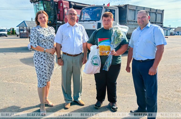 Также поздравления в этот день принимал Дмитрий Козич – комбайнер КУСП «Березовское», молодежный экипаж которого из года в год занимает лидирующие позиции в районе. Парень пришел в сельское хозяйство по стопам отца: Николай Григорьевич посвятил местному сельхозпредприятию без малого 40 лет. Профессию инженера-механика Дмитрий освоил в Белорусском государственном аграрном техническом университете. Нынешняя страда – восьмая на его счету. «Спасибо за поздравления и оказанное внимание. Работа зовет! Пока благоприятная погода, каждая минута на счету», – правильно отметил комбайнер.