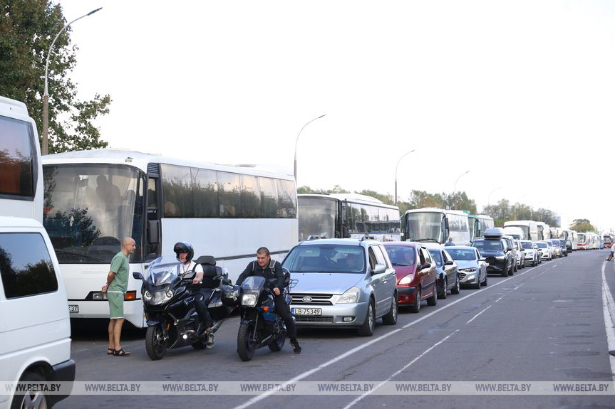 По последней информации, в ожидании выезда из Беларуси в Польшу 1590 легковых автомобилей, 67 автобусов. По-прежнему в среднем поляки пропускают за час семь автомобилей.