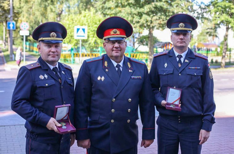 Медалями «За безупречную службу» награждены 19 сотрудников органов внутренних дел области. Среди них – начальник изолятора временного содержания лиц, задержанных или заключенных под стражу, Березовского РОВД майор милиции Александр Демидович и начальник инспекции по делам несовершеннолетних райотдела майор милиции Дмитрий Бубникович.