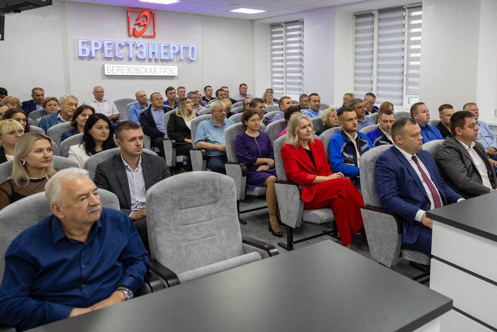 В актовом зале собрались председатель Березовского райисполкома Вячеслав Метлицкий, председатель Белоозерского горисполкома Владимир Пилипец, первый заместитель генерального директора – главный инженер РУП «Брестэнерго» Александр Матюк и трудовой коллектив предприятия.