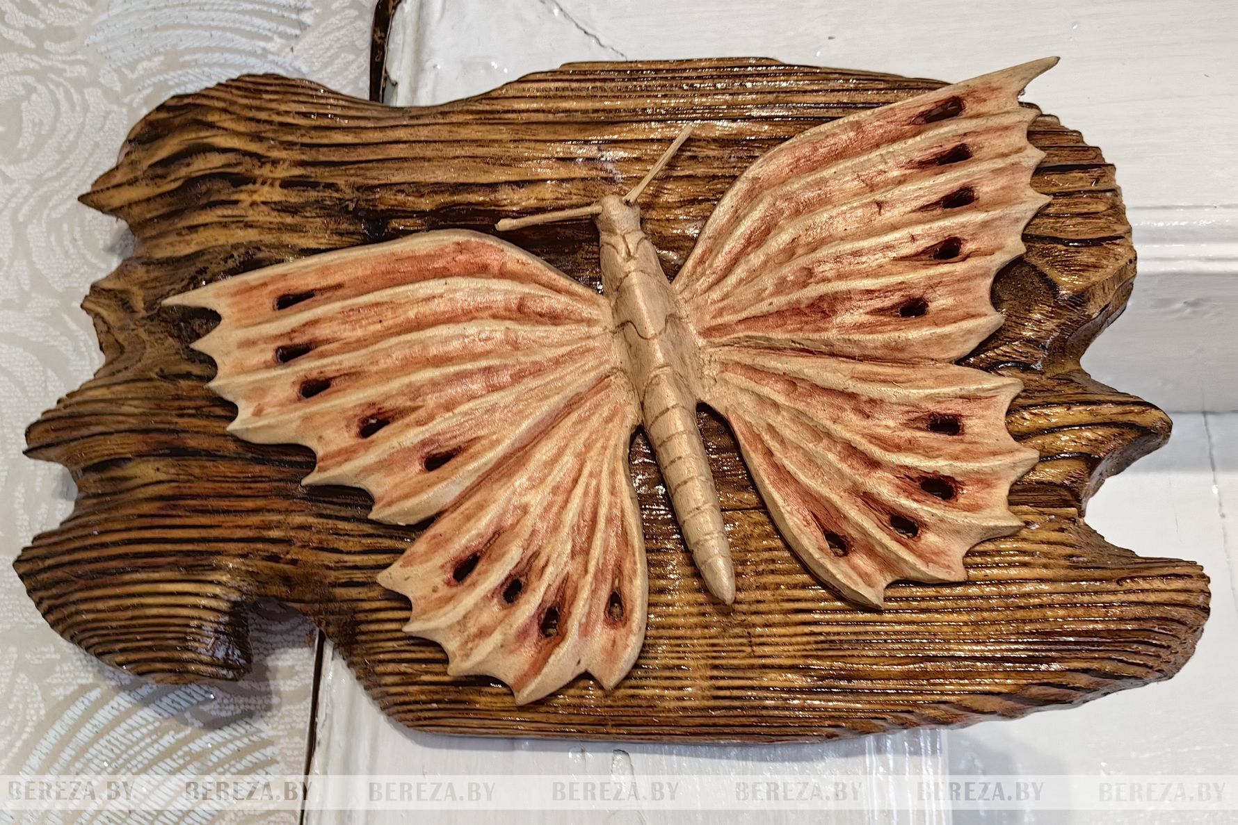 «Как вы узнаете, что получится? – хочу разобраться, как рождаются работы. – Есть ли предварительный замысел?» И получаю ответ: «Некоторые профессионалы сразу ставят цель, планируют, что будут делать. Мне же интересно работать интуитивно, не зная заранее, что получится. Постепенно, непосредственно в работе, начинаю размышлять. Для меня резьба – это отдых, увлечение, сам процесс которого приносит удовольствие, а результат – выброс гормонов радости. Поэтому не делаю работы на заказ за деньги, ведь при таком подходе не остается места творчеству, это как у станка стоять, а я у станка стоял на работе – в автобазе, потом на мясокомбинате, когда работал фотографом-ретушером и занимался изготовлением этикеток».