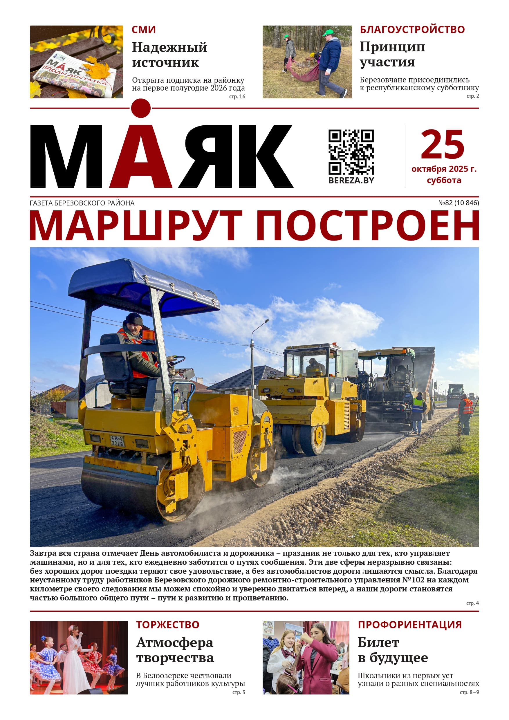 Анонс выпуска газеты «Маяк» за 25 октября 2025 года — BEREZA.BY