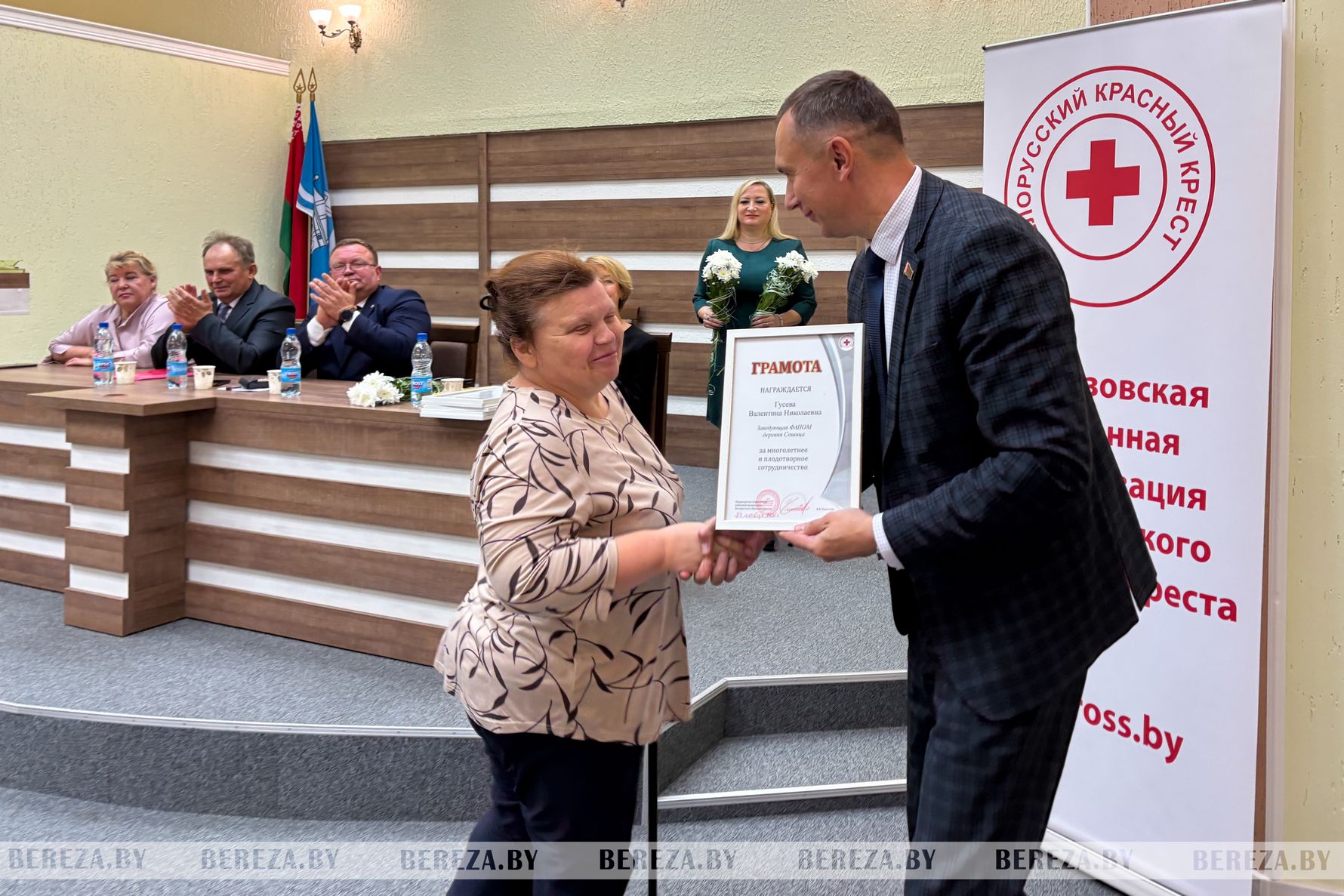 Работу районной организации Красного Креста высоко оценили приглашенные гости. Николая Каштеляна единогласно переизбрали на должность руководителя на следующие пять лет. Приятным моментом мероприятия стала церемония награждения. Николай Кузьмицкий вручил грамоты Брестской областной организации Белорусского Красного Креста Николаю Каштеляну, Нелли Малейтиной, Елене Сакович и Елене Барашко. Почетных наград районной организации удостоены Галина Скибинская, заместитель главврача по медицинскому обслуживанию населения Березовской ЦРБ Вячеслав Сакович, заведующий Борковским ФАП Валентина Данилкович, заведующий Сошицким ФАП Валентина Гусева, председатель первички ОАО «Нарутовичи» Татьяна Чабай, учитель СШ №2 г. Березы Ольга Соловей.