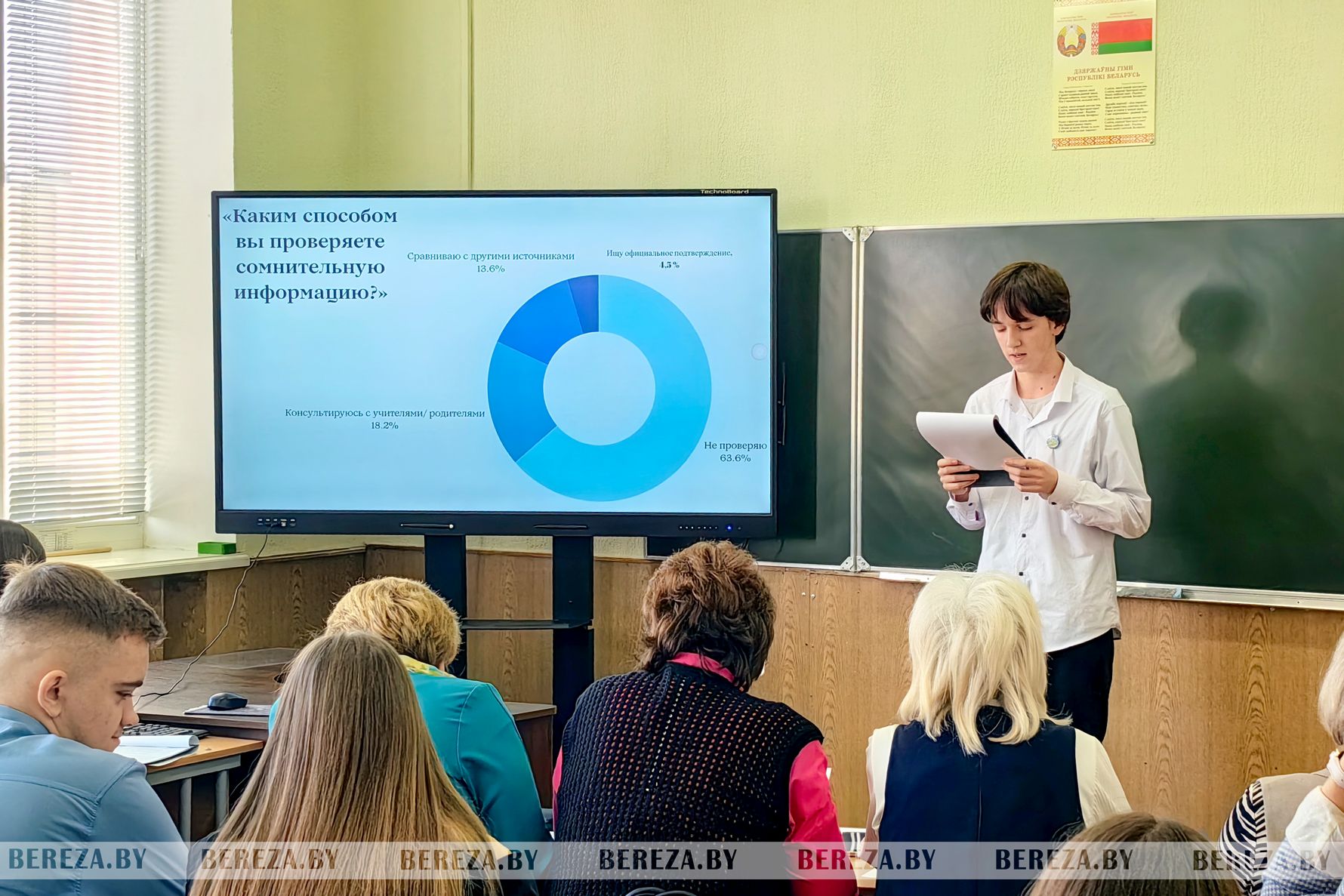 И вот кульминация конкурса – публичная защита своей научной деятельности. Каждый участник подготовил содержательный доклад, создал яркую презентацию, демонстрирующую этапы и результаты его работы. Лучшими проектами были признаны и отмечены дипломами І степени следующие работы: Кирилла Позняка «Чат-боты: от истории до создания» (СШ №1 г. Березы им. В.Х. Головко, руководитель – Наталья Самосюк), Ксении Мшар и Арины Базылюк «Применение искусственного интеллекта в разработке программного обеспечения: сравнительный анализ моделей и подходов» (СШ №3 г. Березы, руководитель – Александр Усачев), Анастасии Мшар «Роль глагольных форм (причастий и деепричастий) в художественном тексте (на материале поэмы М.Ю. Лермонтова «Мцыри» (Огородниковская СШ, руководитель – Наталья Трутько), Марии Степанюк «Первые шаги и риски» (Сигневичская СШ, руководители – Анна Мшар и Алла Скорина), Марии Чернявской «Семантические особенности послелогов при формировании фразовых глаголов в английском языке» (гимназия г. Белоозерска, руководитель – Вероника Решетникова), Алеси Тарасюк «Секретный код фабульного имени, или Особенности перевода сказочных имен с английского языка на русский» (на примере переводов произведений Беатрис Поттер) (гимназия г. Белоозерска, руководитель – Тамара Ковалевская), Романа Быцко «Минералы – природные очистители воды» (Малечская СШ, руководитель – Елена Решетицкая). Наибольшее количество дипломов завоевано представителями следующих учреждений образования: 5 – гимназия г. Белоозерска, по 3 – СШ №1 и СШ №3 г. Березы, Малечская СШ.