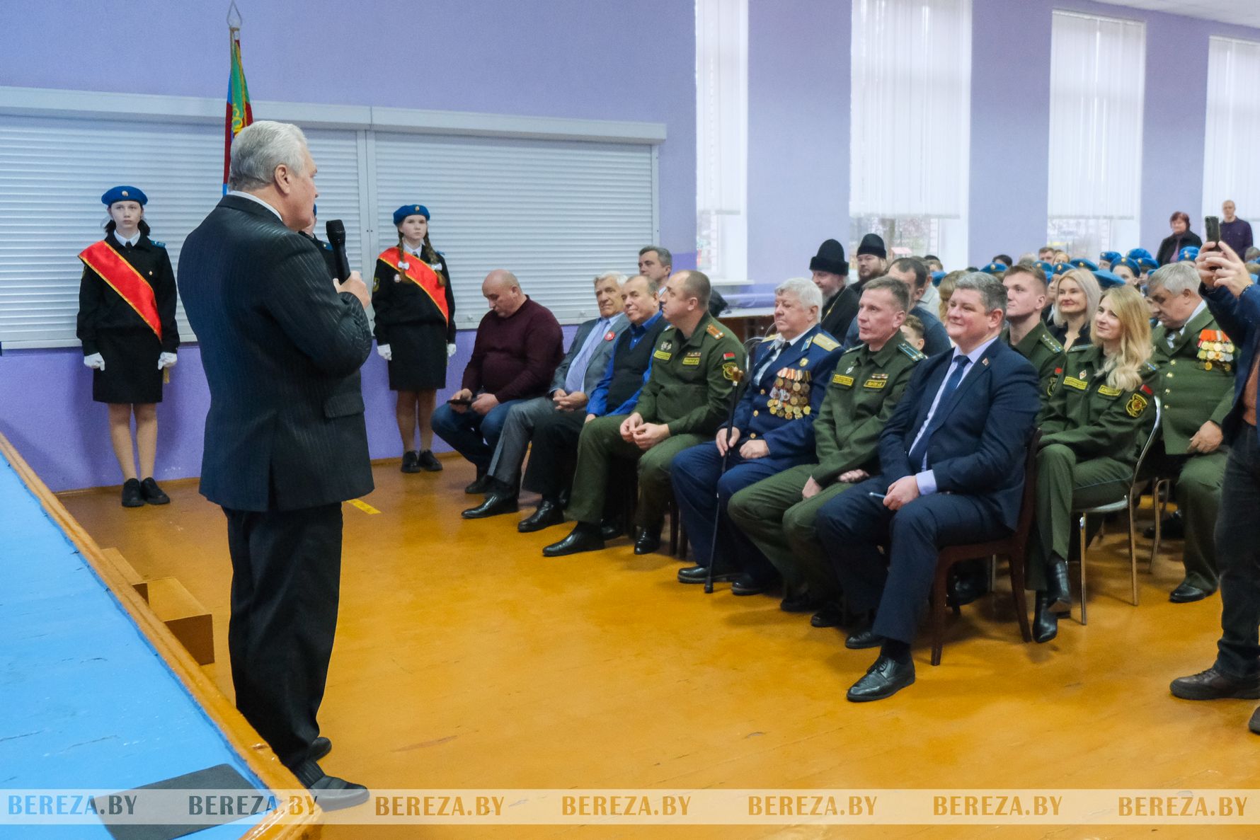 Поздравления также прозвучали от председателя районной организации Белорусского общественного объединения ветеранов Владимира Сергеева. Каждый выступавший в этот день говорил о том, что быть кадетом – значит быть честным, порядочным, ответственным и дисциплинированным человеком, примером для подражания, и желал быть верными кадетской клятве.