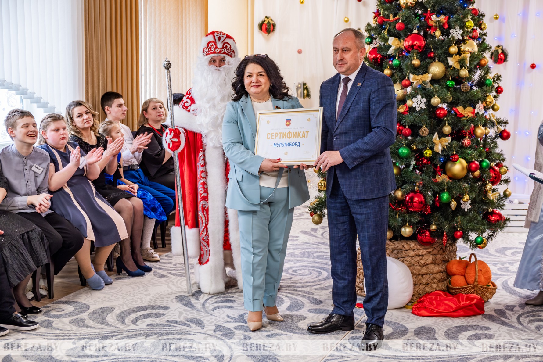К поздравлениям присоединился председатель Березовского райисполкома Вячеслав Метлицкий, пожелав благополучия, добра и мира в наступающем году, чтобы детский смех и улыбка на лицах ребятишек присутствовали в учреждении круглый год. От районного исполнительного комитета Вячеслав Валерьевич вручил центру телевизор. Полезные подарки – денежные сертификаты, наборы сладостей – передали ЦКРОиР и другие гости. Все обязательно найдет свое применение в данном учреждении.