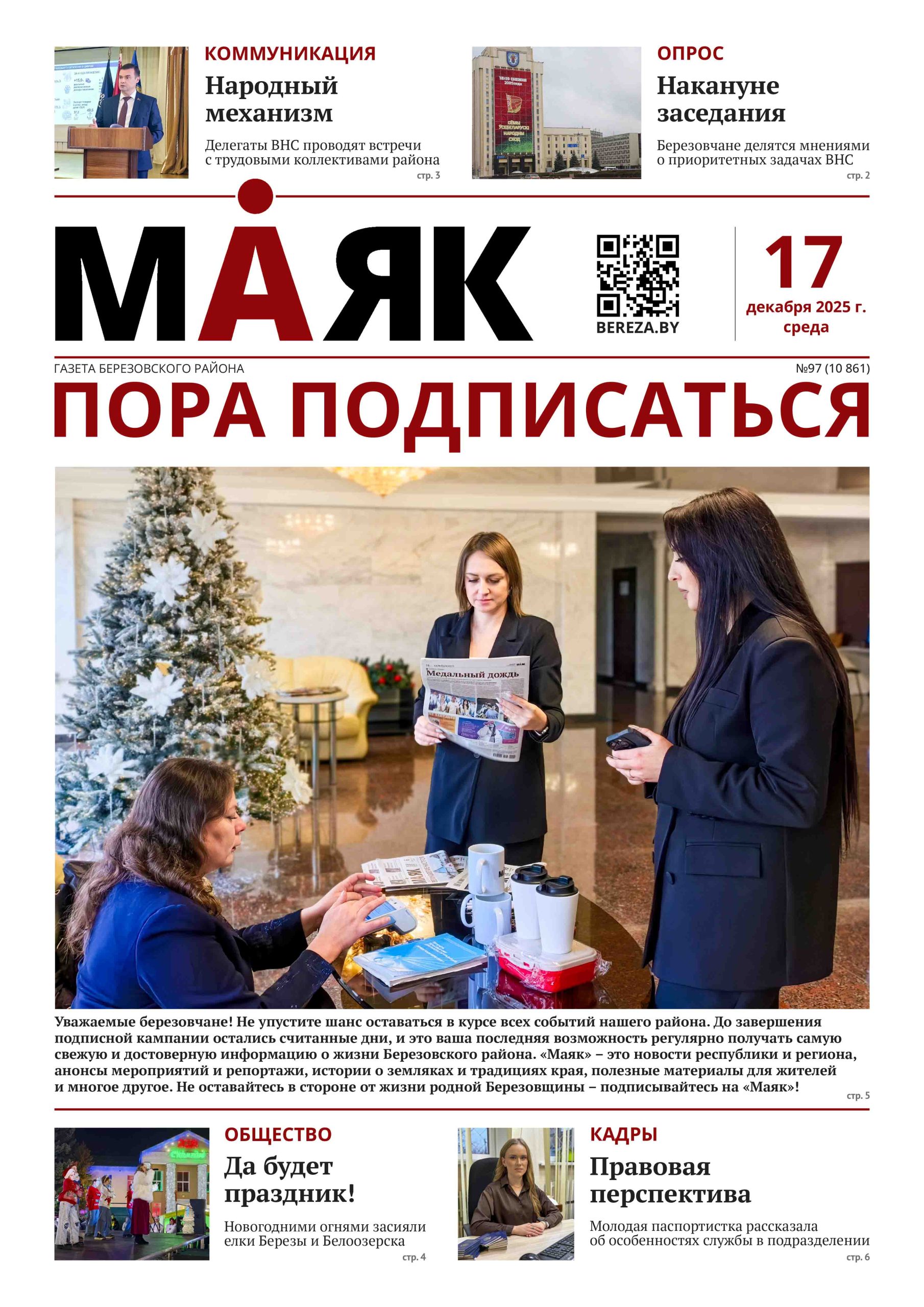 Анонс выпуска газеты «Маяк» за 17 декабря 2025 года — BEREZA.BY
