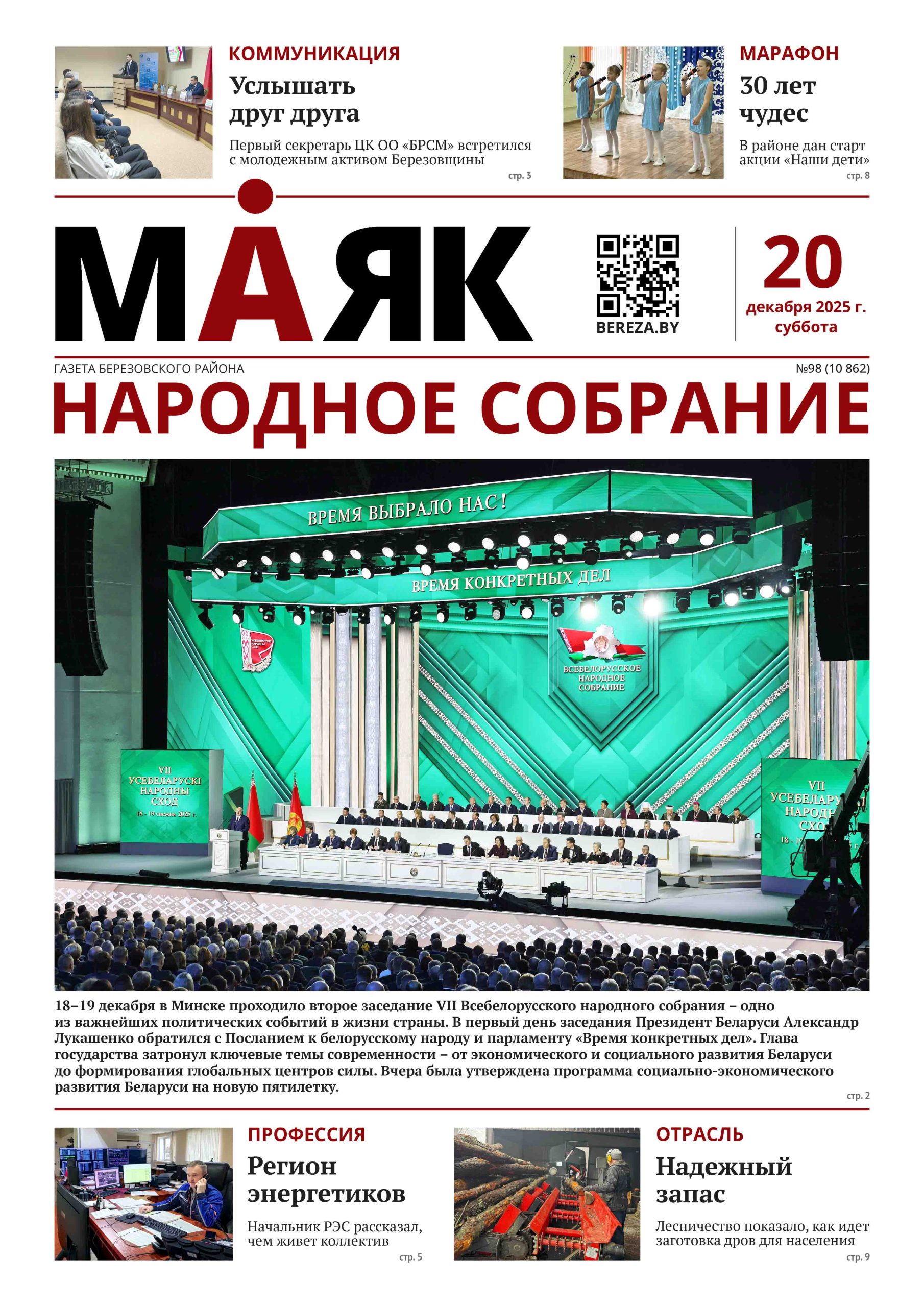 НА СТРАНИЦАХ БЕРЕЗОВСКОЙ РАЙОННОЙ ГАЗЕТЫ «МАЯК» 20 ДЕКАБРЯ: