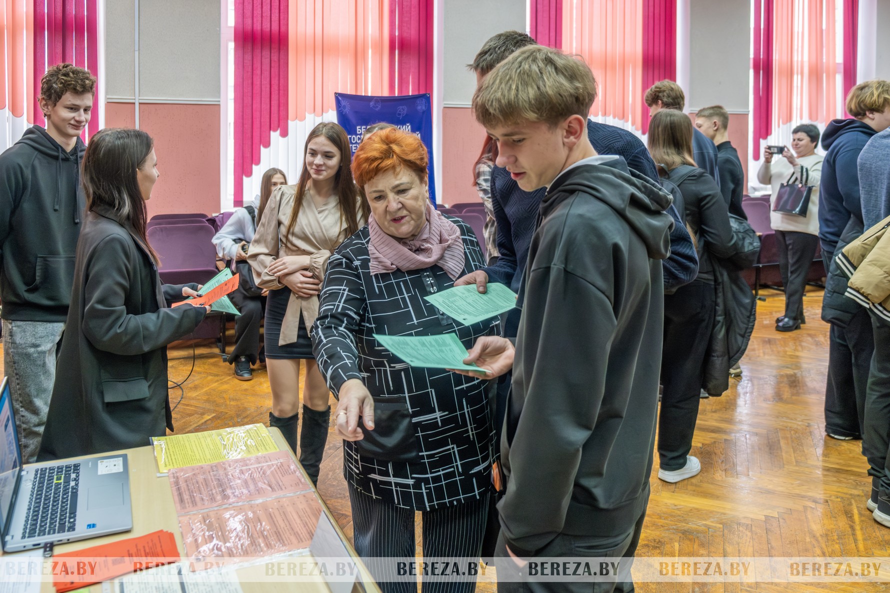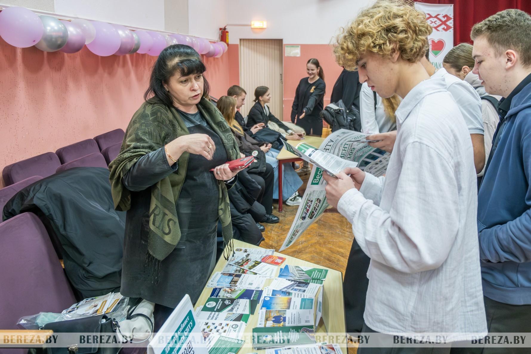 Факультеты Барановичского университета представили студенты, все – выпускники школ Березовского района. К примеру, Полина Стасюк окончила Первомайскую среднюю школу им. И.И. Волосевича, учится на 3-м курсе факультета педагогики и психологии, в будущем квалифицированный социальный педагог и педагог-психолог. «Я очень хотела здесь учиться и поэтому сейчас агитирую школьников поступать в наш университет. Если сказать о плюсах обучения в нескольких словах, то это логистика – близкое расстояние и железнодорожное сообщение, комфортные условия для обучения и проживания, дружный коллектив студентов и профессиональная команда преподавателей», – отметила девушка.