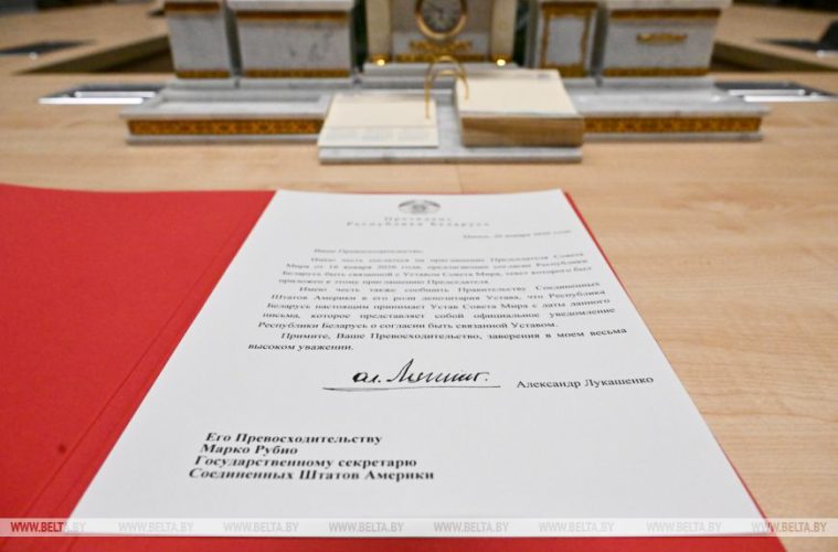 Президент Беларуси Александр Лукашенко от имени Республики Беларусь подписал документ о присоединении Беларуси к Совету мира и выполнении положений Устава Совета мира. В полном соответствии с предусмотренной процедурой, которая была обозначена в письме Президента США Дональда Трампа.