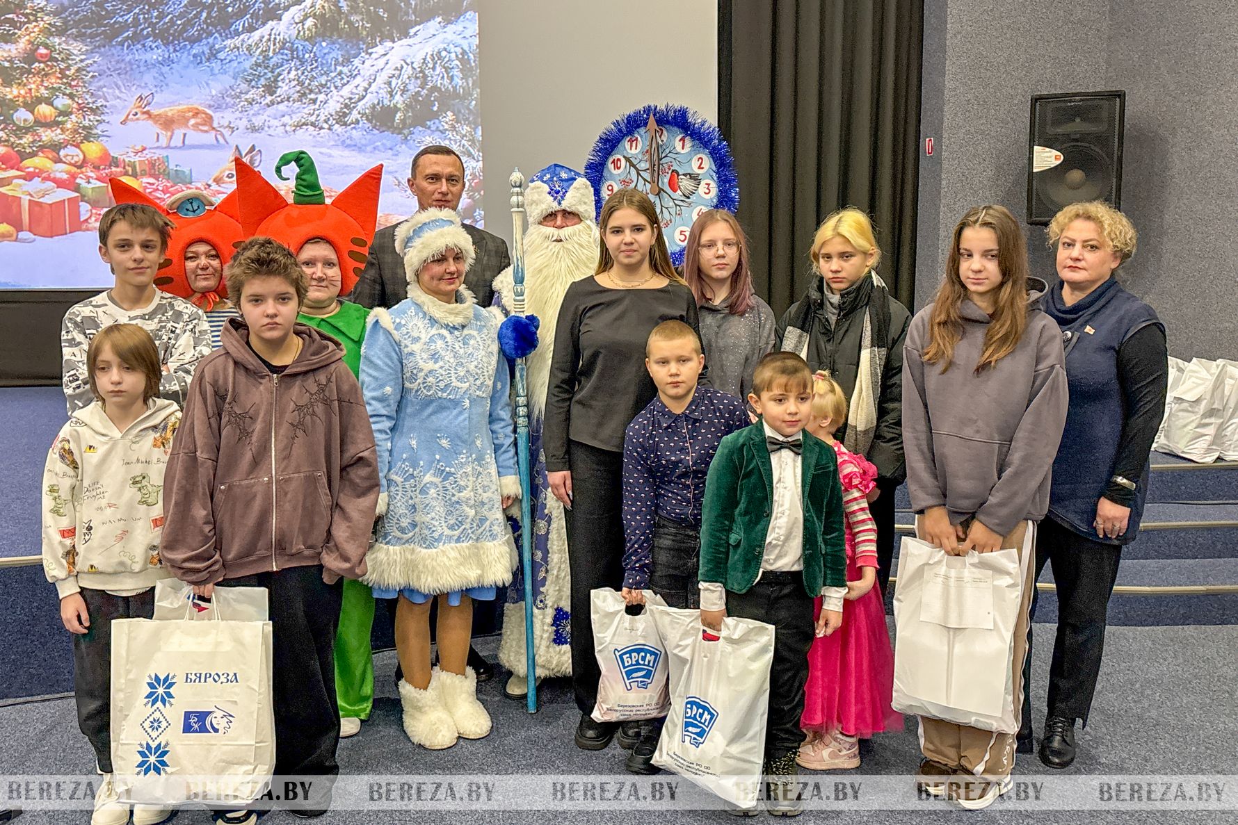 По сложившейся традиции в кинотеатре «Октябрь» состоялся праздник «Чудеса на Рождество» для детей из многодетных, неполных, малообеспеченных и оказавшихся в сложной жизненной ситуации семей района. Организаторы благотворительного торжества – комиссия по делам несовершеннолетних, отдел по образованию и отдел идеологической работы и по делам молодежи Березовского райисполкома.
