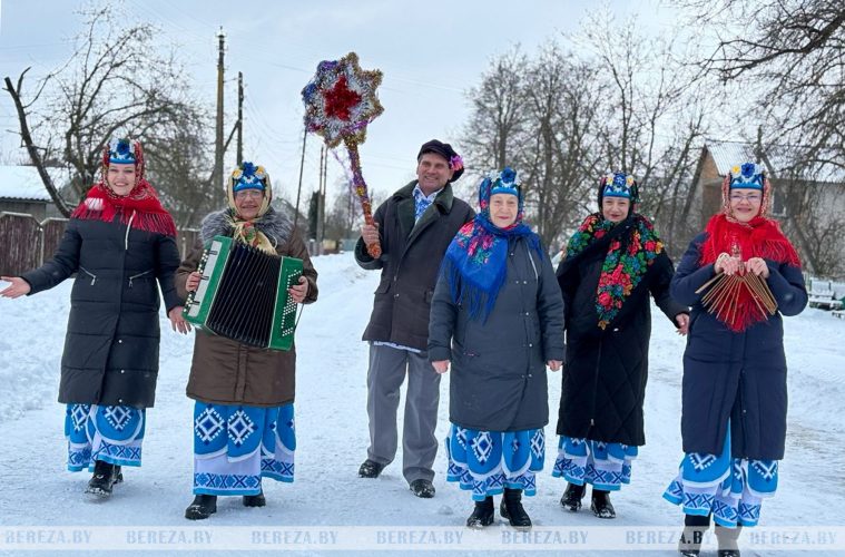 – С наступлением сумерек из домов выходят группы ряженых. Это дети, взрослые в ярких костюмах, часто в масках и с самодельными атрибутами. Такие праздники объединяют всех жителей деревни. Хозяева нас всегда ждут и радушно принимают. В каждом районе свои традиции. Кто-то щедрует с козой. У нас принято все святые вечера ходить со звездой. Меняются только песни. По традиции мы заходим в дом с песней: «Добры вечар! Шчодры вечар! Добрым людзям на здароўе. А мы песні вам прынеслі. Добры вечар! Шчодры вечар! Добры вечар, пан-гаспадар! Ці ты спіш, ці ляжыш, ці ў акенца глядзіш? Дазвольце ваш дом развесяліць, песню запець і Бога праславіць». После разрешения поем песню «Добры вэчор тобі, панэ-господару», а после поздравляем: «Дай Вам Божа жыць у раскошы, мець торбу грошай, бяды не знаць і шчасліва святкаваць! Будзьце здаровы, жывіце багата, хай шчаснаю долей поўніцца хата! У Шчодры вечар вас вітаем, шчасця, радасці жадаем! А вы здаровы бывайце ды праз год нас зноў чакайце!». Люди у нас щедрые, не скупятся на добрые слова, благодарят, дают деньги и угощения. Считается, что чем щедрее угощение, тем более благосклонной будет судьба к дому в новом году.