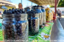 На прилавках продовольственного рынка в Березе появилась первая черника. За полулитровую банку лесной ягоды продавец просит 5 рублей.