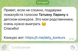 Жителям Брестской области, в том числе и Березовского района, массово поступают сообщения от знакомых с просьбой проголосовать за Татьяну Ларину в детском конк...