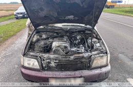 Вчера, 28 июля, около 15.00 на 3-м км автодороги Р84 около д. Порослово произошло возгорание в моторном отсеке движущегося автомобиля Audi, которым управлял бе...