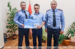Представители Березовского РОВД Геннадий Хилько и Виктор Иванюк вручили подарочные сертификаты на 1 000 рублей трем учреждениям образования района – СШ №2 и СШ...