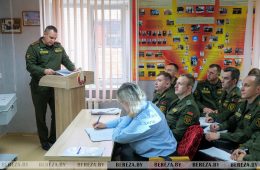 В торжественной обстановке в комнате боевой славы в/ч 97085 двадцать пять учащихся 10-х классов СШ №2 г. Березы произнесли клятву на верность принципам ВПК «МИ...