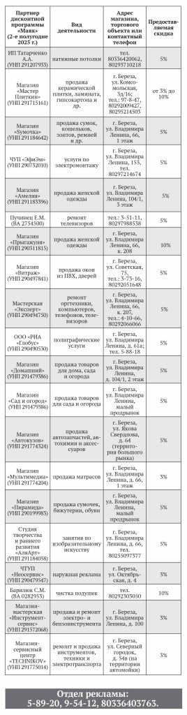 По всем вопросам обращайтесь в отдел рекламы: 8-01643-5-89-20, 8-01643-9-54-12, 8033-640-37-63 (Viber, Telegram); reklama@maiak.by.